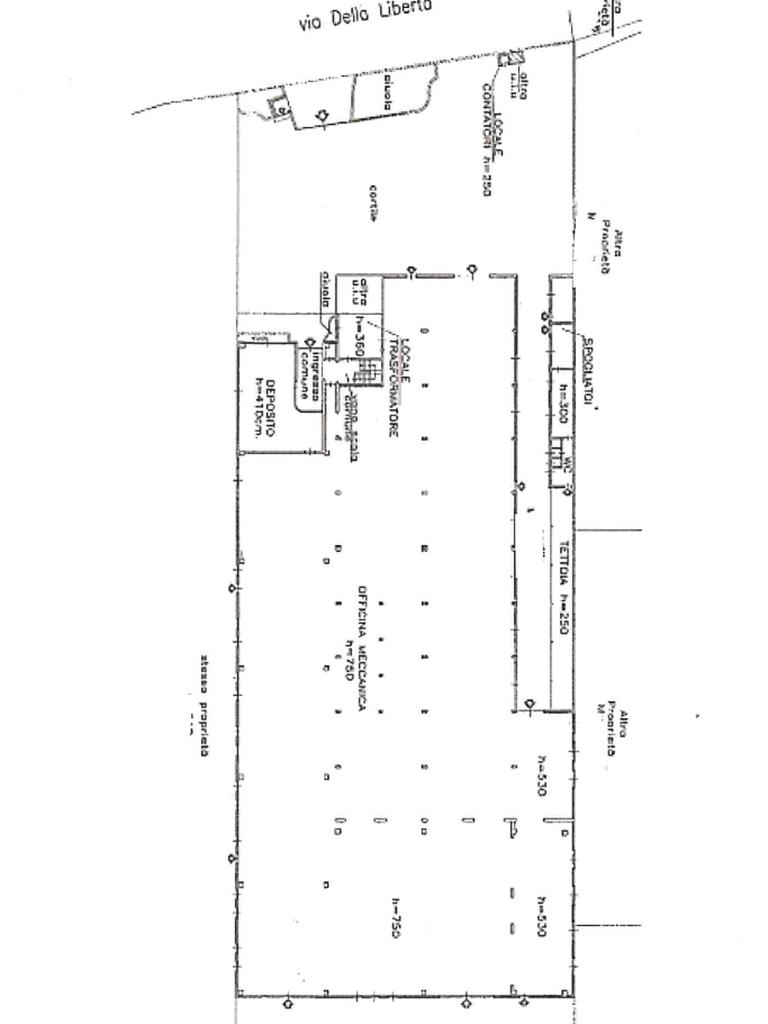 L’immobile è composto da un capannone principale con altezza interna di 7,50 metri, completo di 4 portoni che agevolano l’accesso e le operazioni di carico e scarico. All’interno sono presenti 3 gru a ponte e 3 gru a bandiera.