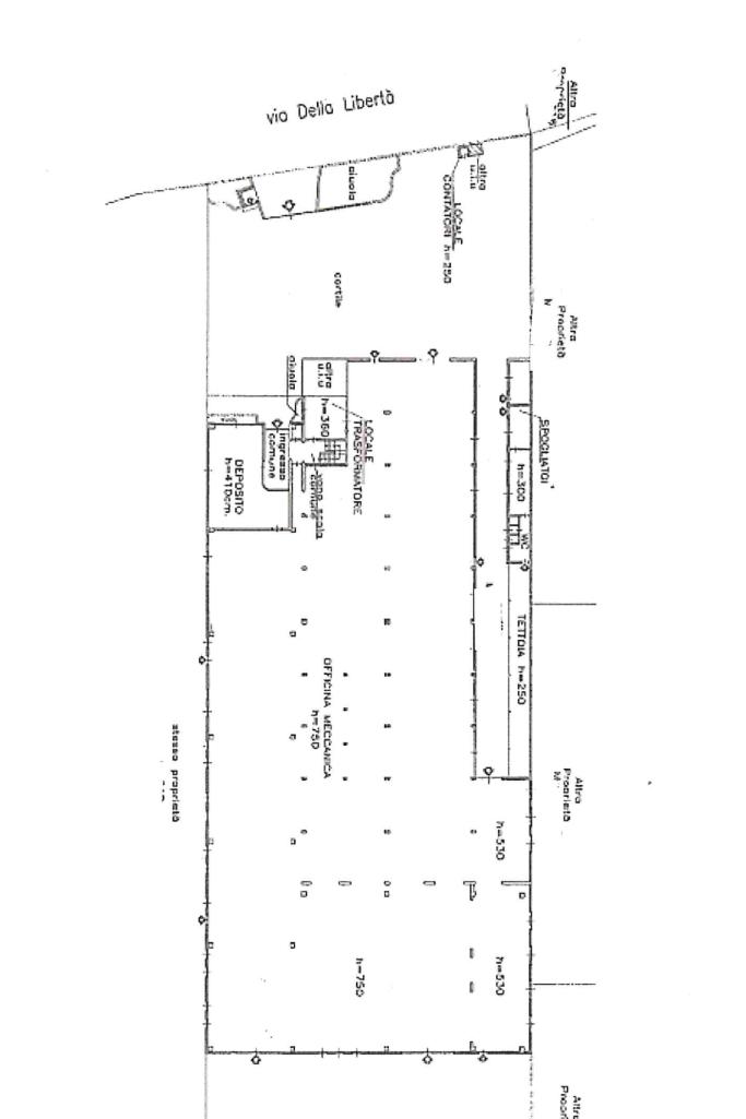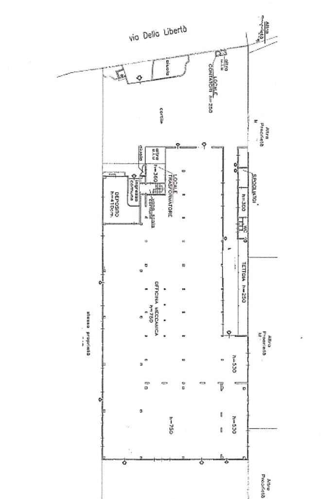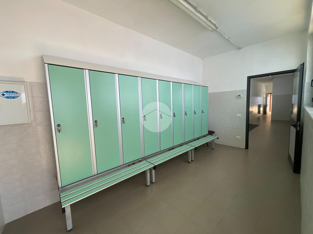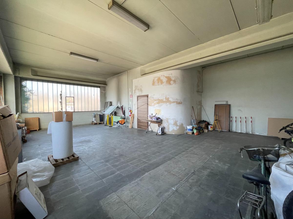 Completano la proprietà una zona uffici ed un’abitazione da ristrutturare al P1, per un totale di 126 mq. Sono inoltre presenti spogliatoi e bagni.